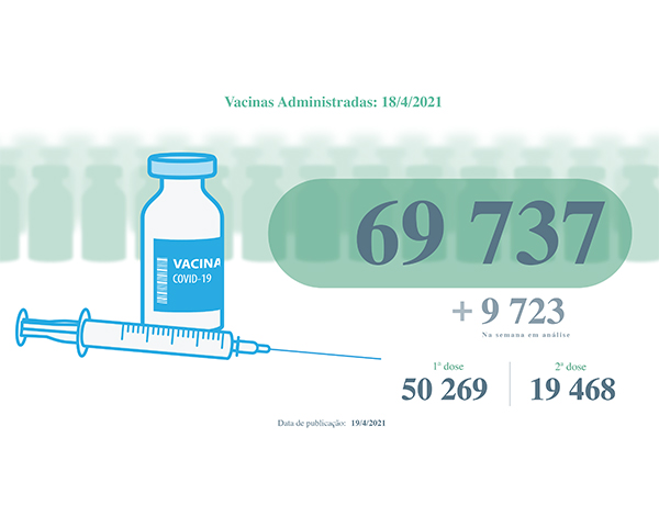 Na semana em análise, foram administradas 18.887 vacinas, das quais 3591 foram primeiras doses e 15.296 segundas doses de vacina.
