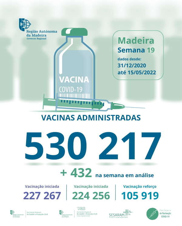 Até ao dia 22 de maio de 2022 foram administradas na Região Autónoma da Madeira, 530 740 vacinas contra a COVID-19, desde dia 31 de dezembro de 2020.