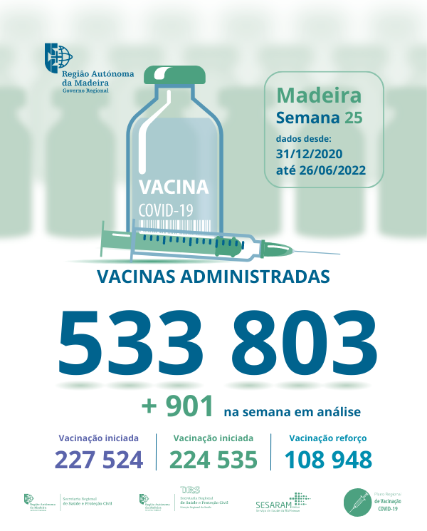 Até ao dia 26 de junho de 2022 foram administradas na Região Autónoma da Madeira, 533 803 vacinas contra a COVID-19, desde dia 31 de dezembro de 2020.