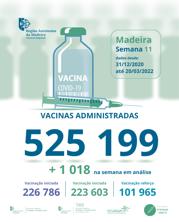 Até ao dia20de marçode 2022 foram administradas na Região Autónoma da Madeira, 525199vacinas contra a COVID-19, desde dia 31 de dezembro de 2020.