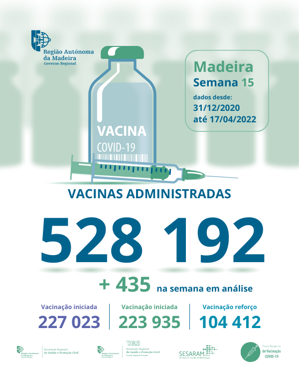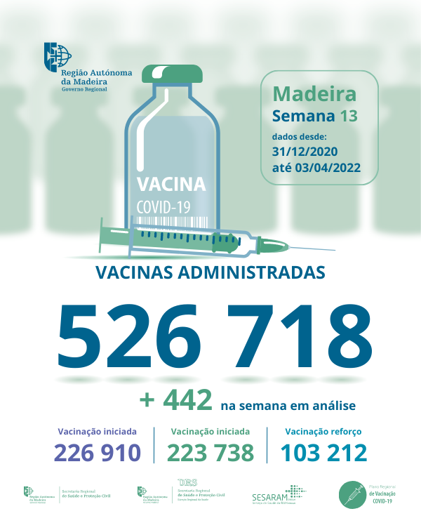 Até ao dia 03 de abril de 2022 foram administradas na Região Autónoma da Madeira, 526 718 vacinas contra a COVID-19, desde dia 31 de dezembro de 2020.