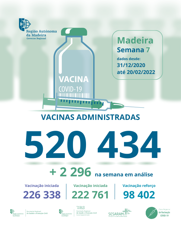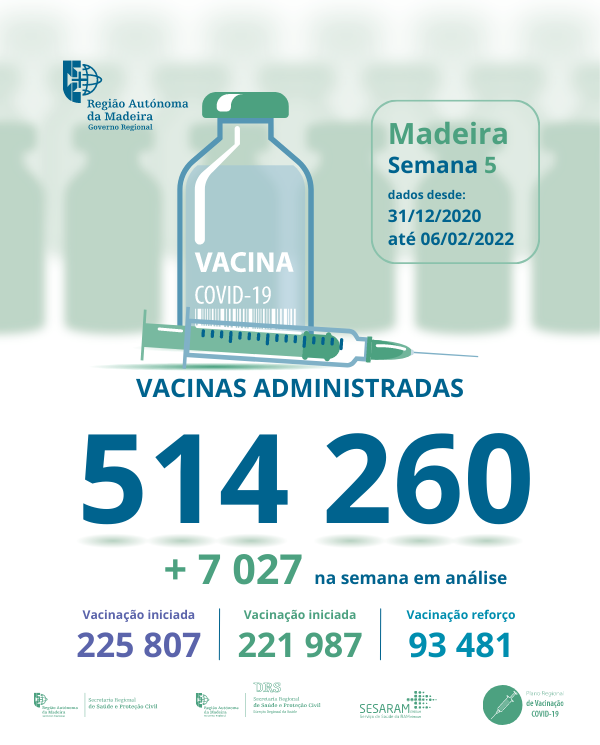 Até ao dia 06 de fevereiro de 2022 foram administradas na Região Autónoma da Madeira, 514 260 vacinas contra a COVID-19, desde dia 31 de dezembro de 2020.
