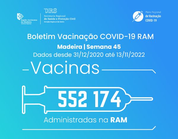 Até ao dia 07de novembro foram administradas na Região Autónoma da Madeira, 401068vacinas contra a COVID-19. Desde dia 31 de dezembro de 2020.