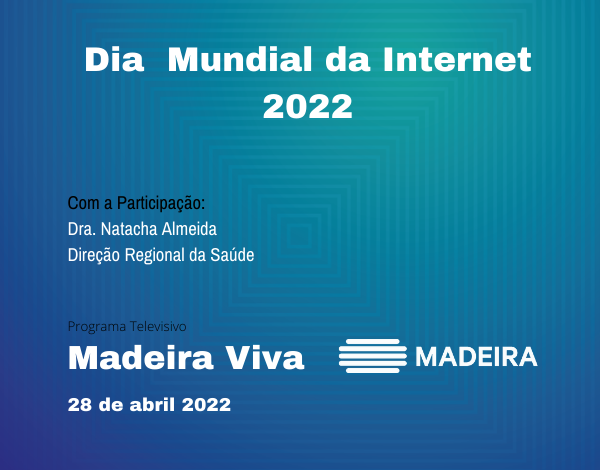 Participação da Direção Regional da Saúde, através da Unidade Operacional de Intervenção em Comportamentos Aditivos e Dependências (UCAD), no programa "Madeira Viva", dia 28 de abril, com o Dra. Natacha Almeida, Psicóloga Clínica que irá abordar o tema "Dia Mundial da Internet 2022".