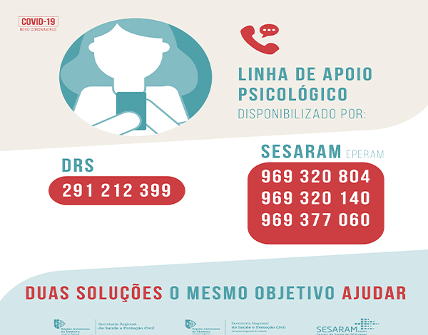 A DRS e o SESARAM, EPERAM, disponibilizam as linhas de apoio psicológico criadas no contexto da Pandemia de COVID-19.