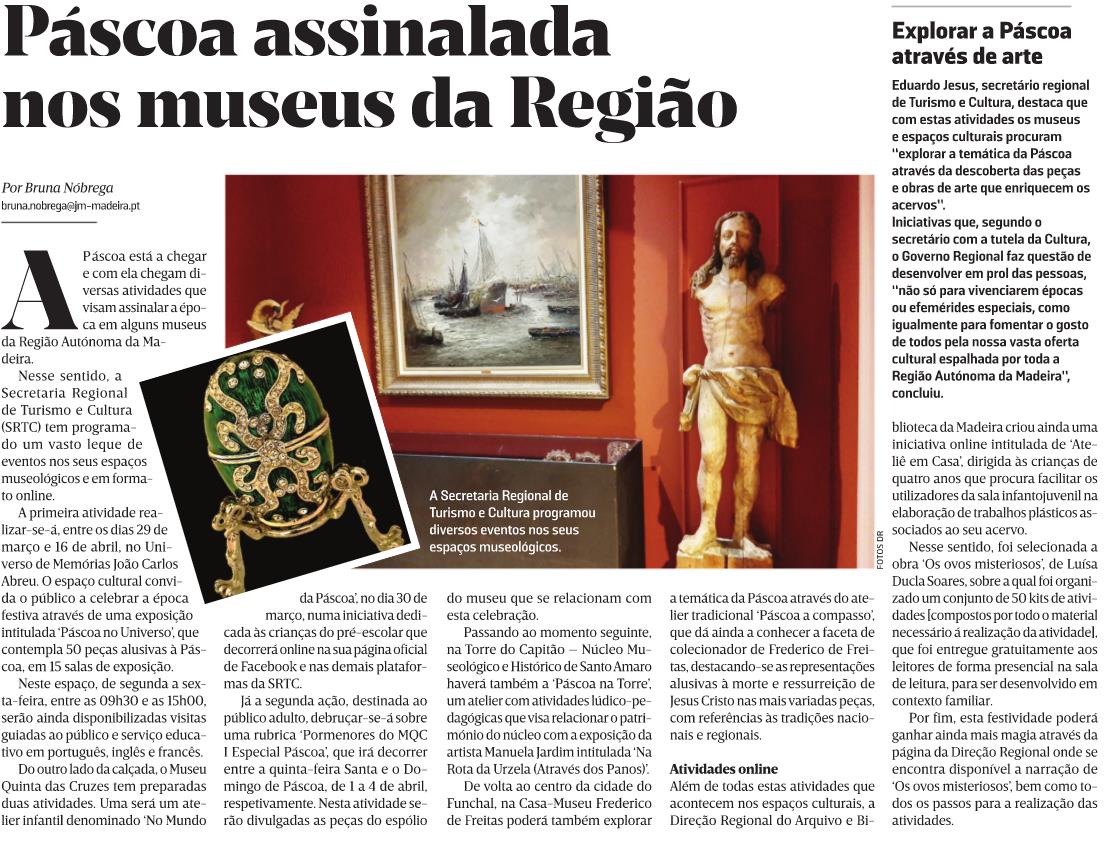 A Secretaria Regional de Turismo e Cultura programou diversos eventos nos seus espaços museológicos e na Direção Regional do Arquivo e Biblioteca da Madeira para assinalar a Páscoa.