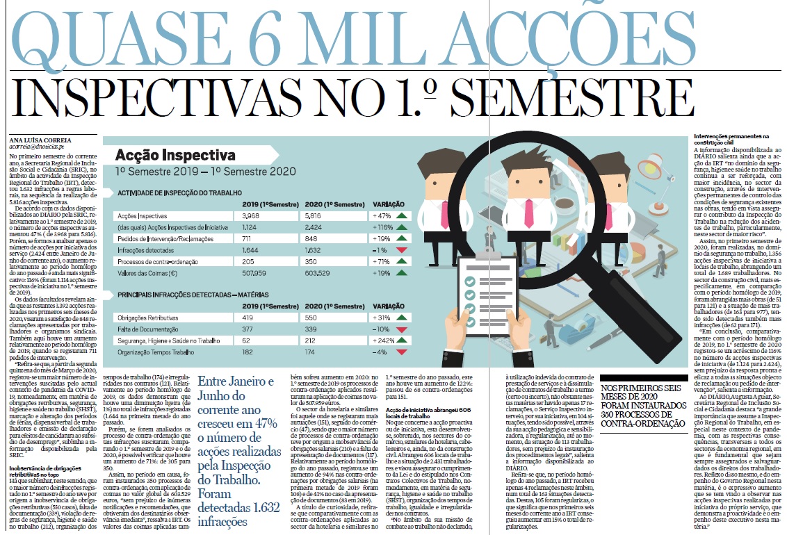 O número de acções realizadas pela Inspeção do Trabalho cresceu 47% no primeiro semestre de 2020. Foram detetadas 1.632 infrações com as questões retributivas no topo dos processos.