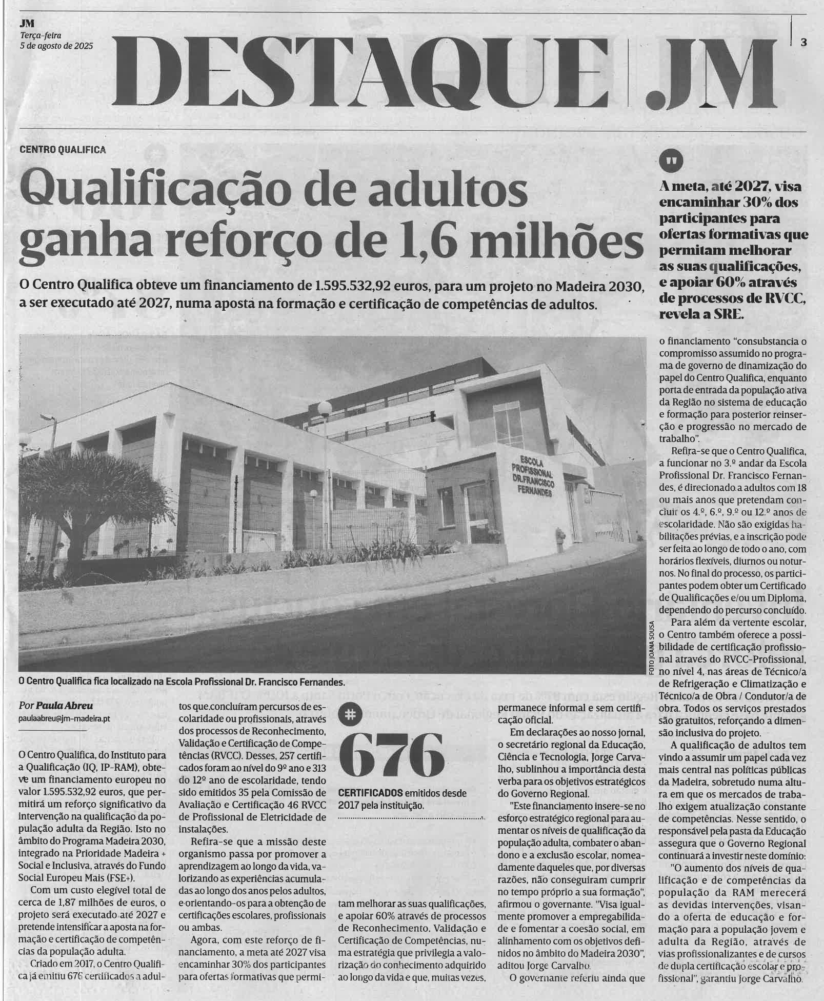 Centro Qualifica do Instituto para a Qualificação - Jornal da Madeira - 05 de agosto de 2025 05-08-2025 Instituto para a Qualificação