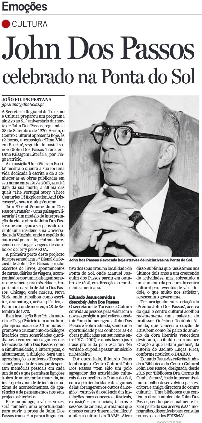 Em declarações ao DN, o Secretário Regional de Turismo e Cultura convida as pessoas para visitarem a nova exposição a qual refere constituir “uma homenagem a John Dos Passos e à obra editada, sendo uma oportunidade para conhecer as 48 obras publicadas em seu nome entre 1917 e 2007, as quais fazem jus à frase proferida pelo escritor: ‘Na verdade, eu podia passar um século na Madeira”.