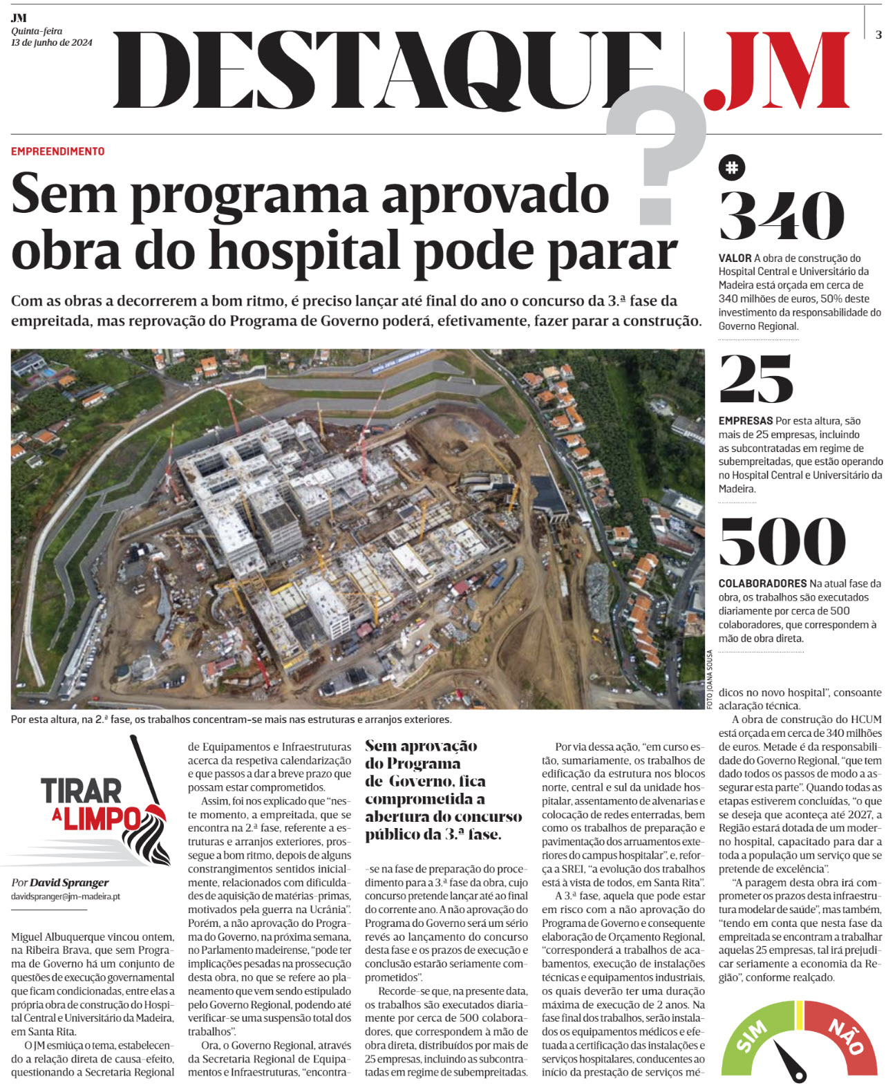 Sem programa aprovado obra do hospital pode parar