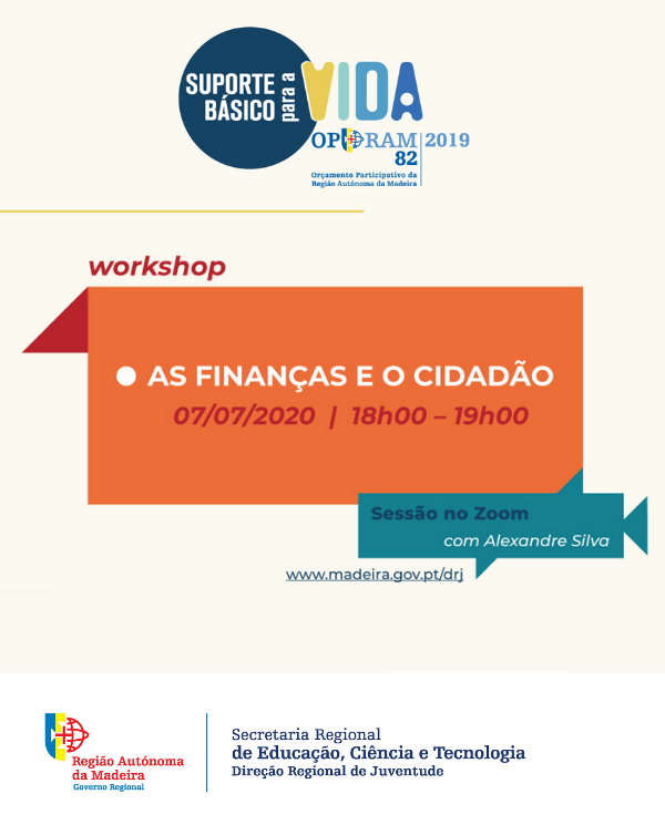A Direção Regional de Juventude promoveu esta terça-feira, dia 7 de julho, através da plataforma Zoom, mais um workshop gratuito, desta vez dedicado ao tema “As Finanças e Cidadão”.