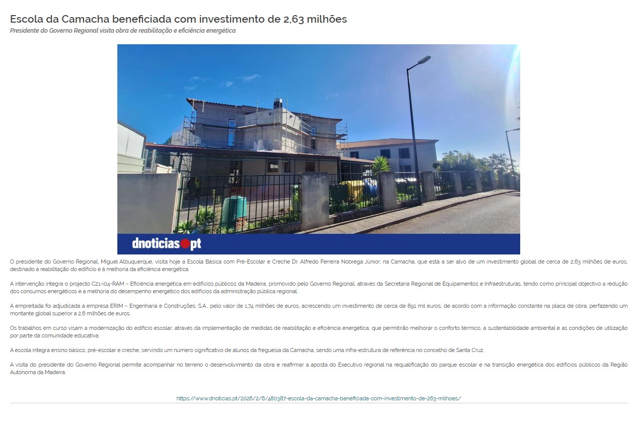 Escola Básica Dr. Alfredo Nóbrega Júnior com obras de melhoria de eficiência energética