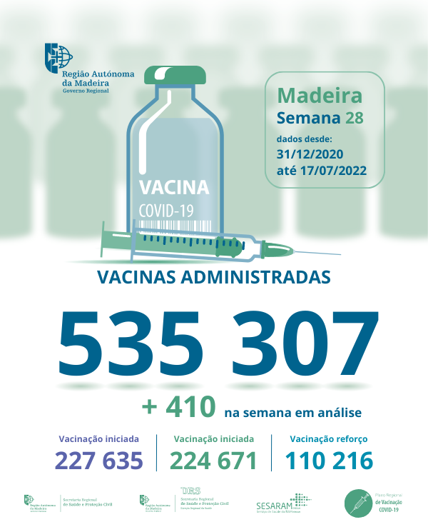 Do número total de vacinas administradas na RAM (535 824), 227 695 correspondem à administração da primeira dose, 224 727 doses de vacinação completa e 110 627 doses de reforço das quais 1 249 são segundas doses de reforço.
