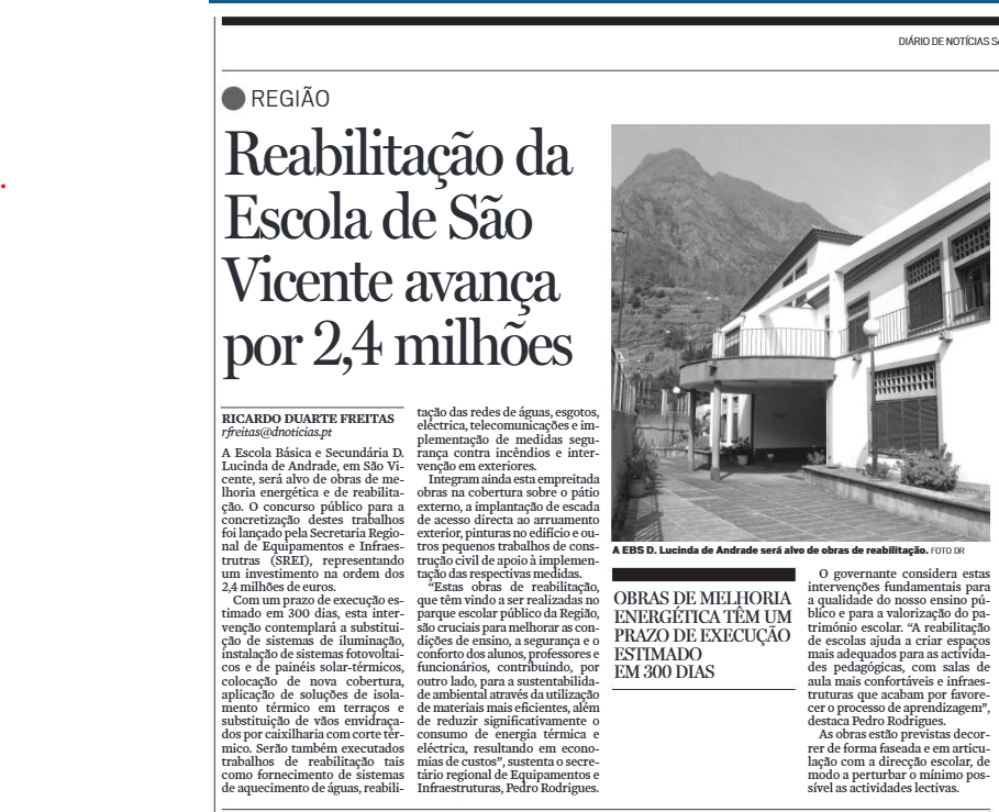 Reabilitação da Escola de São Vicente avança por 2,4 milhões