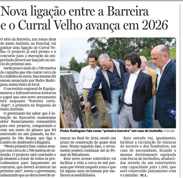 O Secretário Regional de Equipamentos e Infraestruturas, Pedro Rodrigues, apresentou o projeto esta terça-feira, durante uma visita ao local, sublinhando a importância desta intervenção para a mobilidade e segurança da população.