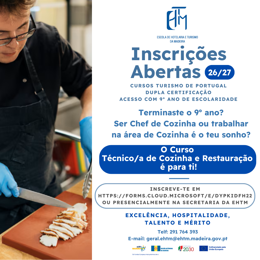 Inscrições abertas! Já está disponível a oferta formativa 2026/2027 do Instituto para a Qualificação. Descubra os novos cursos do Centro de Formação Profissional da Madeira e da Escola Profissional Dr. Francisco Fernandes.