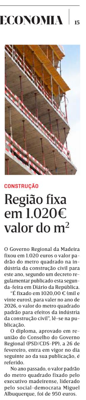 Região fixa em 1.020€ valor do m2