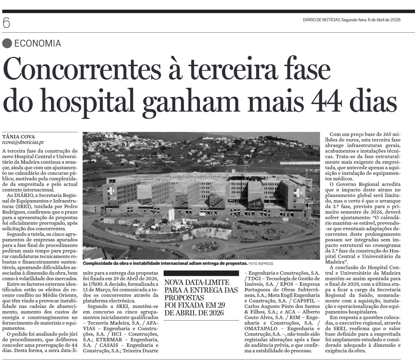 Adiar o Hospital Central em São Miguel é escolher o novo Hospital da Madeira