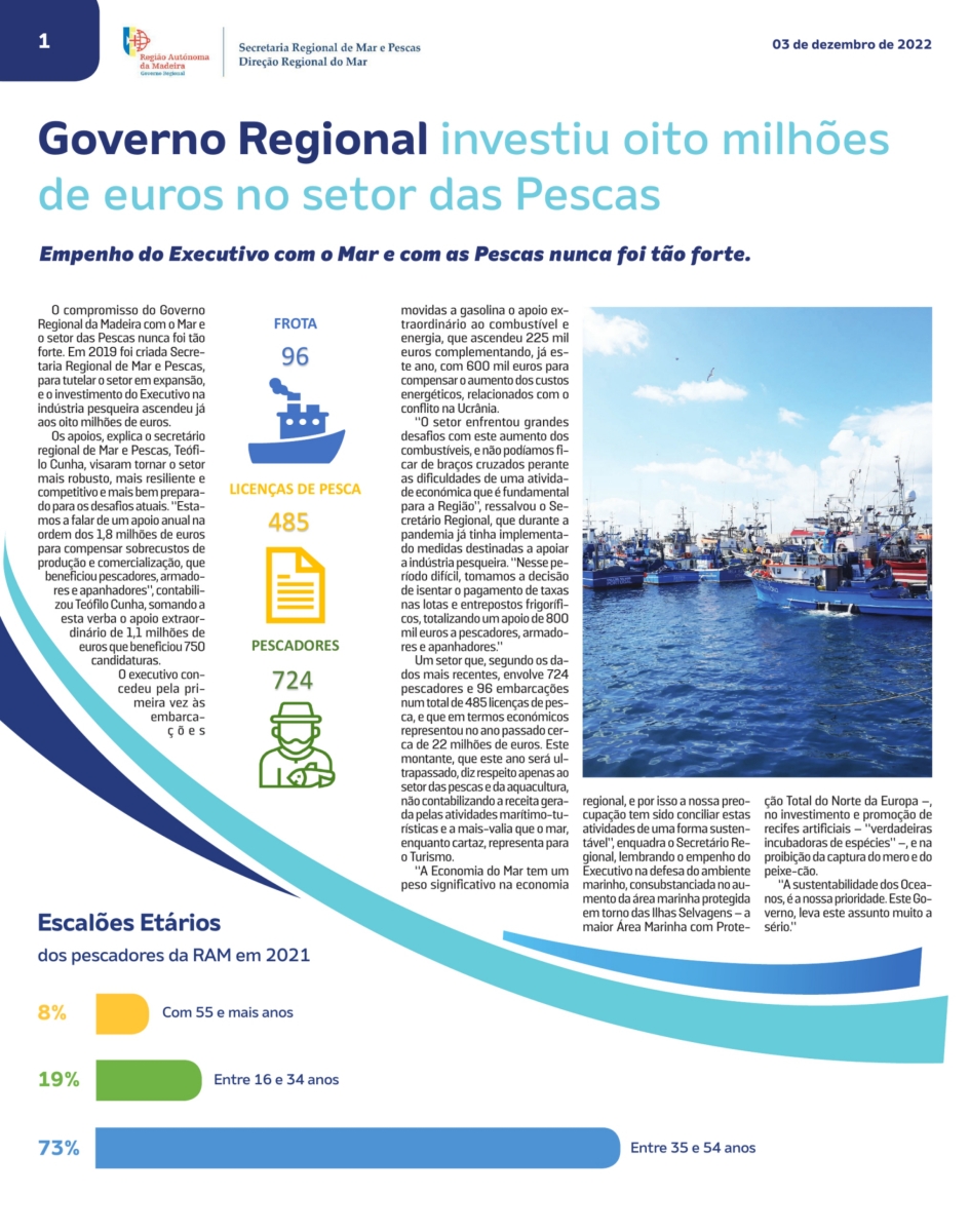 O Governo Regional reservou no Orçamento Regional de 2023, uma verba de um milhão de euros, a replicar nos anos vidouros, para a renovação da frota pesqueira madeirense.
