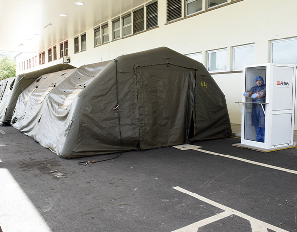 Cabine de proteção para os profissionais de saúde.